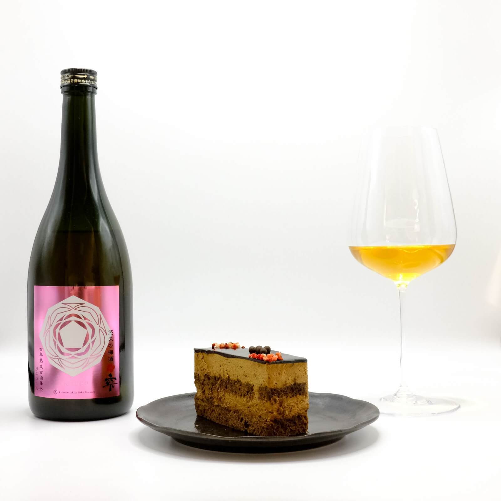 とろけるようなチョコレートに、ぷちっとした食感のイチジク。この濃厚で贅沢なケーキに、意外にもぴったり寄り添うのが梅酒の古酒(長期熟成の日本酒)です。