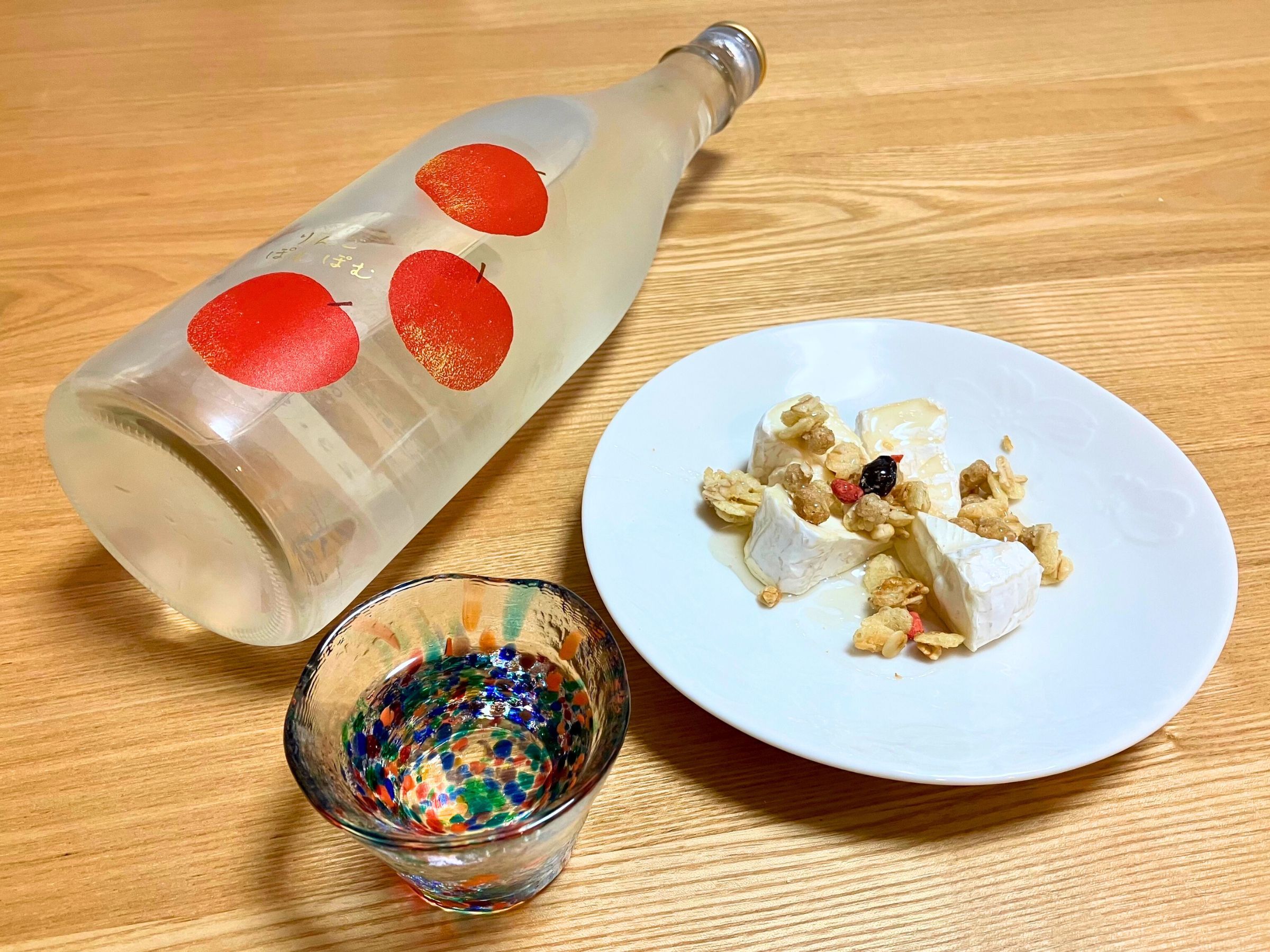 フルーティーな香りと軽やかな酸味が特徴の「りんごぽむぽむ」は、カマンベールチーズにフルーツグラノーラとはちみつをかけたおつまみとよく合います。