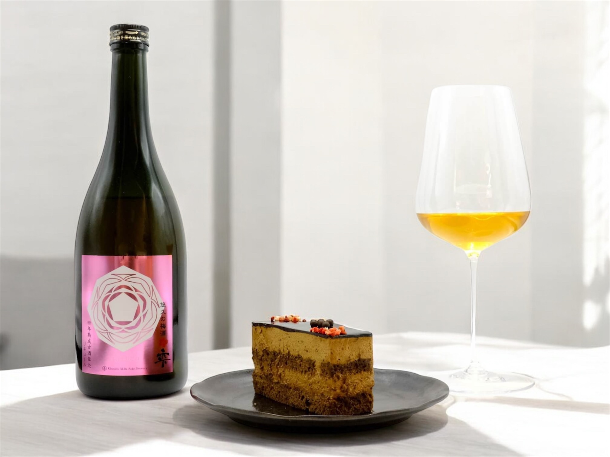 さらに、クリーミーな生クリームとの相性を高めるのが、酒に含まれるやわらかな乳酸のニュアンス。重たくなりがちなケーキを、爽やかでキレのある後味に導いてくれます。