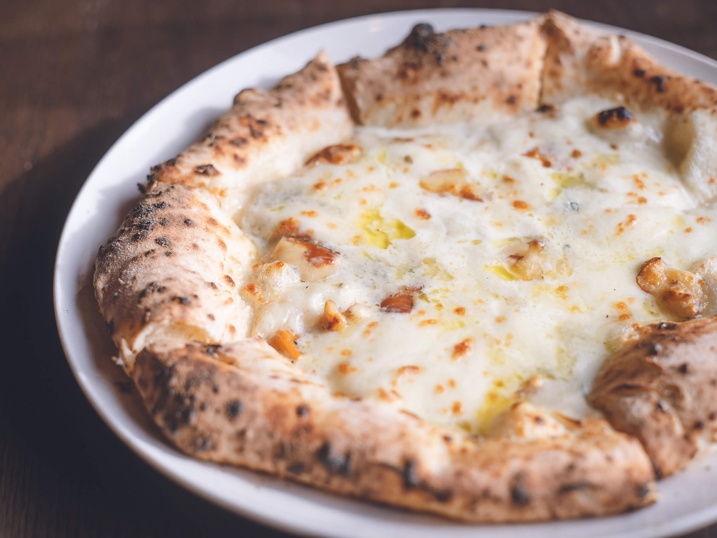 宅配ピザのクアトロフォルマッジは、ゴルゴンゾーラチーズの個性がやさしめ。塩味と蜂蜜の甘味が心地よいです。