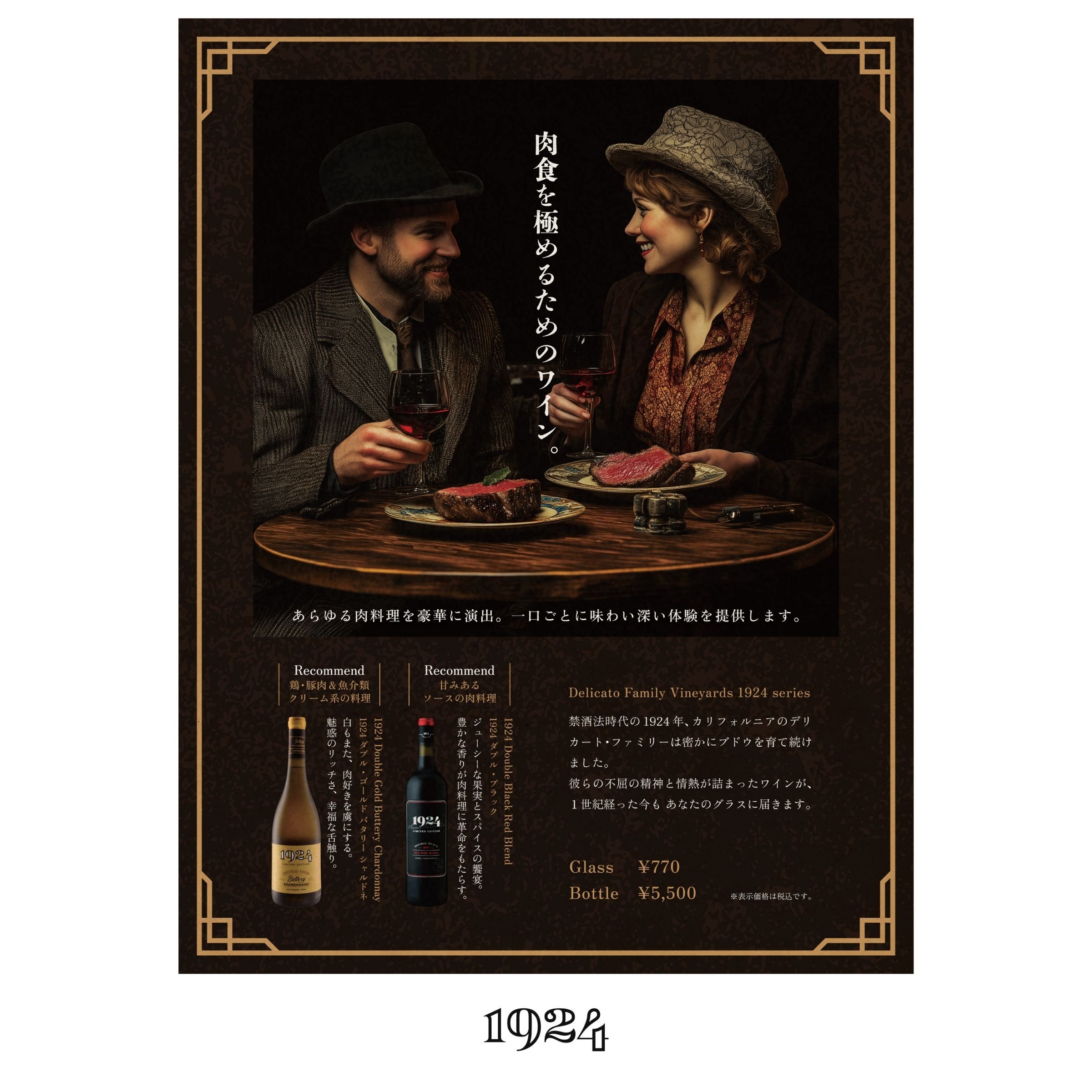 モトックスグループの飲食部門、モトックスプラニング全店にて、カリフォルニアの本格派ワイン『1924』をお楽しみいただけるフェアを開催中です。