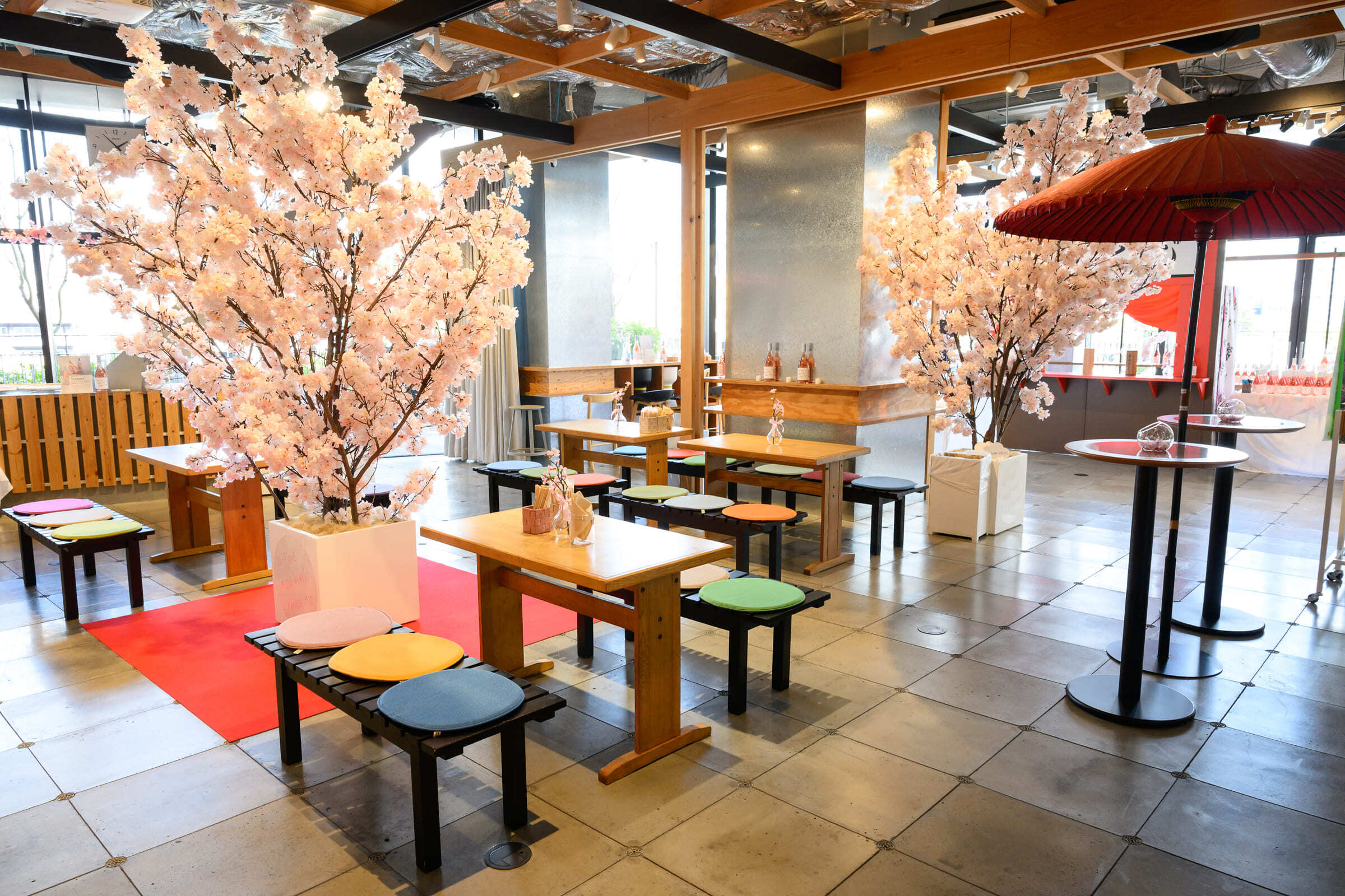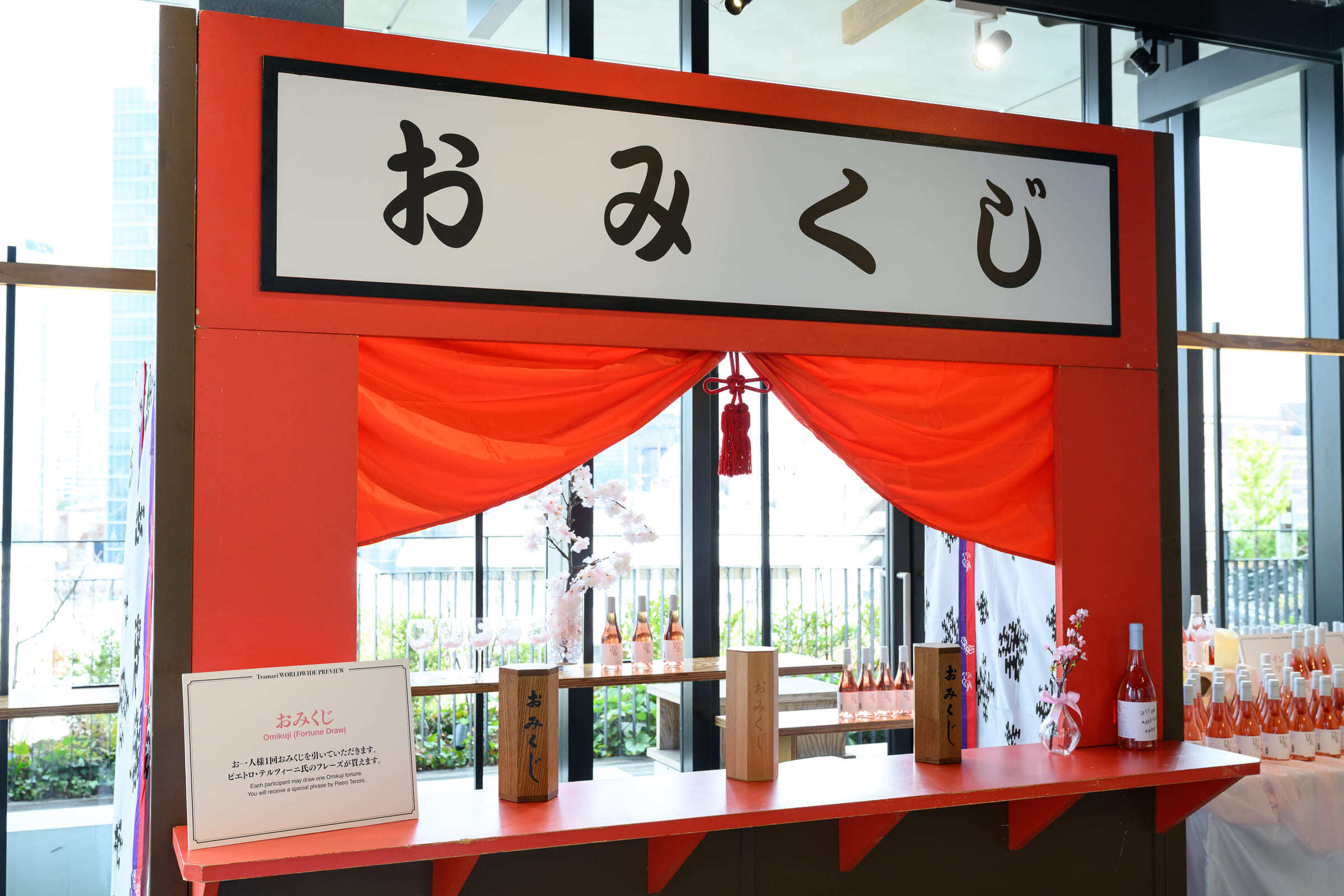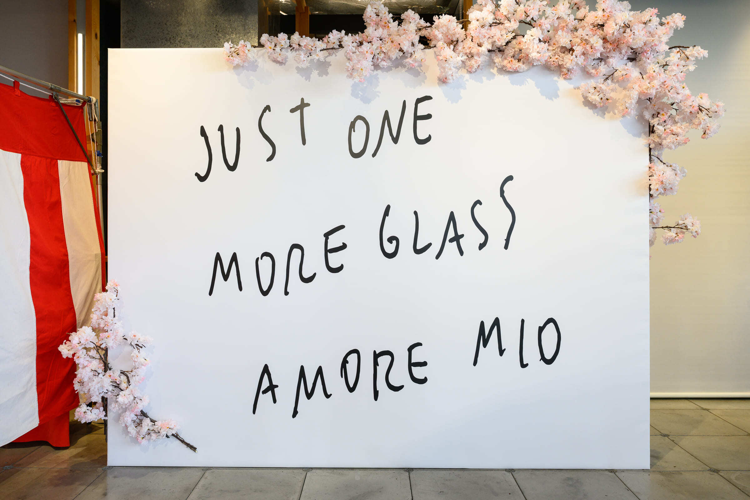 会場は、いまの季節を意識して、桜を基調とした装飾が施され、日本の縁日を模した体験型ブースを展開。さらに、「トラマーリ 2025」のボトルラベルを手がけた、イタリア人アーティストであるピエトロ・テルツィーニ氏が来日し、ラベルデザインをモチーフとしたウォールアートも設置されました。