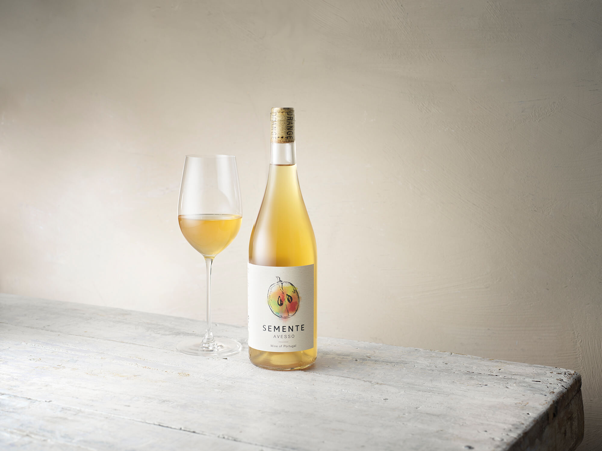 ブドウ品種は、ポルトガル北部ミーニョ地方に見られるブドウ品種であるアヴェッソ種を使用。比較的アルコール分が高く、ふくよかなボディをもたらす一方で、酸度も高くフレッシュさとのバランスにも優れています。核果類やトロピカルフルーツのフレーバーが魅力で、凝縮感が高いことから、オレンジワインにも向く品種です。