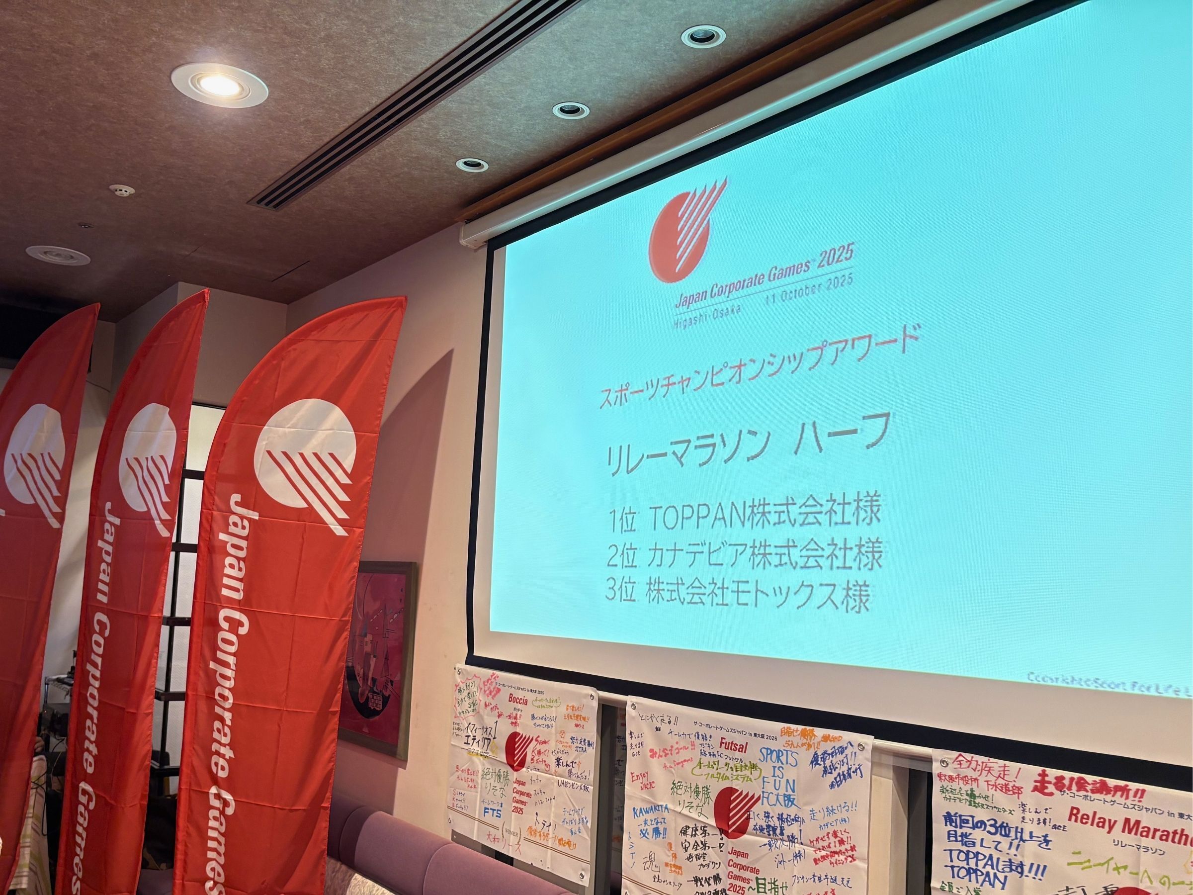 10月31日(金)に「ザ・コーポレートゲームズ」全体の表彰式が行われ、そちらにも参加しました(会場:東大阪市役所)。